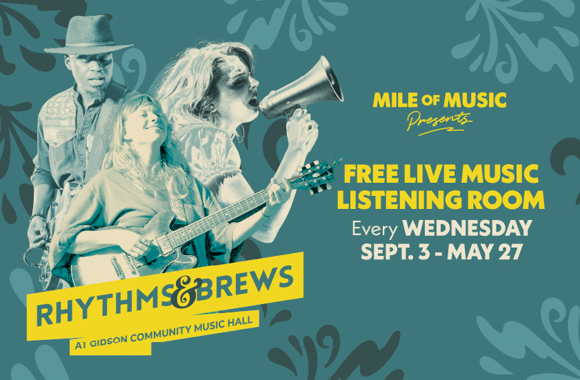 The 2025-26 season of Rhythms & Brews will stage 39 original music shows. This mid-week concert series features popular artists from past Mile of Music Festivals, sprinkled in with a few acts you may not know, but you should! Our goal with this special series is to bring you top national, state and regional singer-songwriters performing their handcrafted songs and sharing stories from the road in an intimate, music-first setting! The music is FREE for all attendees.